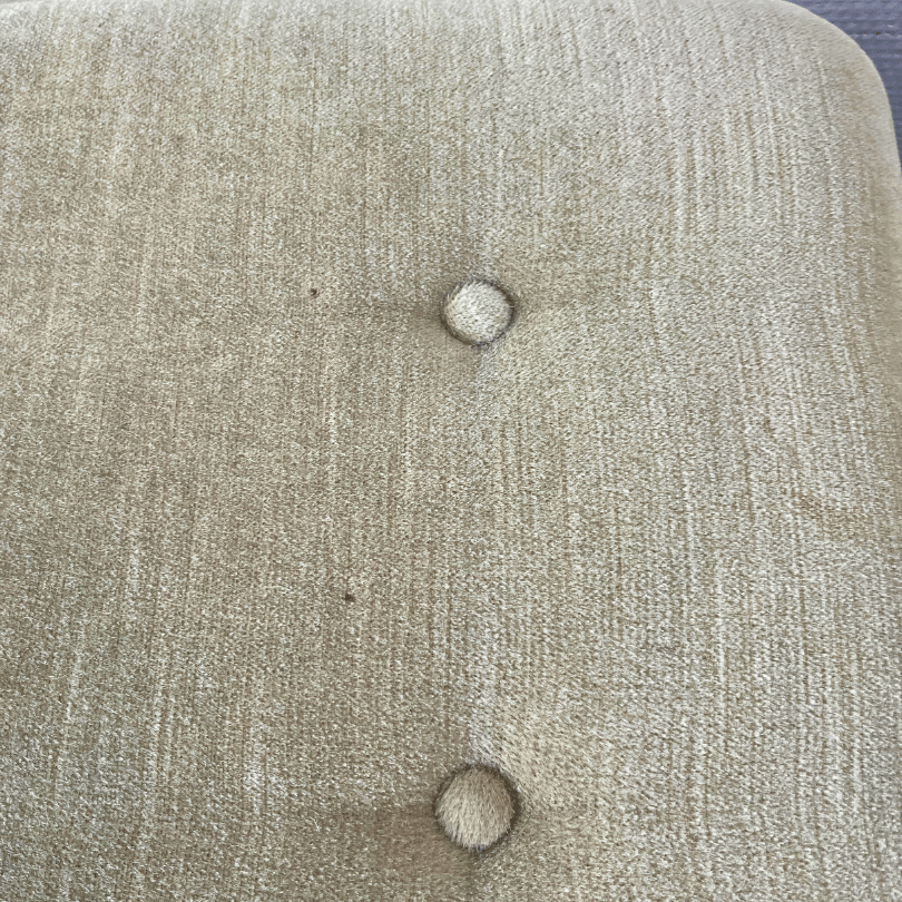 Het bankje is zeldzaam en nog in een goede vintage staat met lichte gebruikssporen passend bij de leeftijd. Het kussen heeft wat kleine vlekjes, zie ook laatste foto.