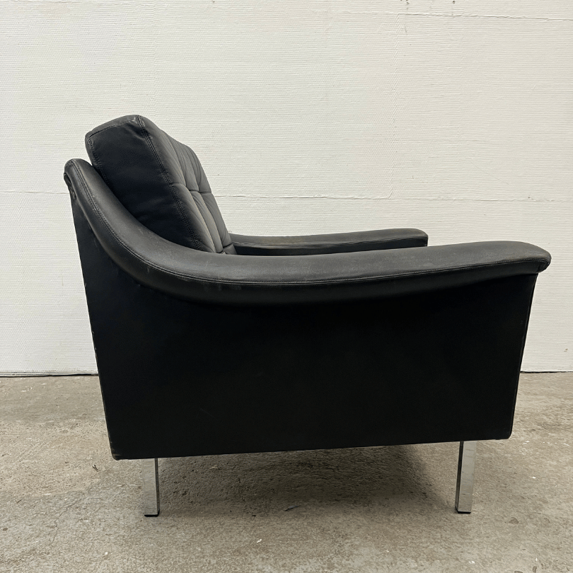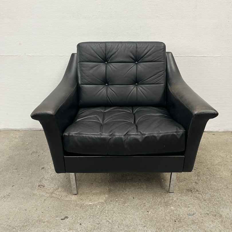 Fauteuil zwart leder – Profilia | jaren ‘70