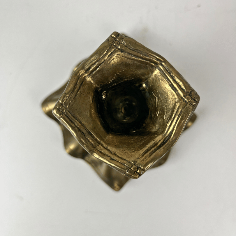 Het ontwerp is vermoedelijk afkomstig uit de jaren ’70, een periode waarin organische vormen en brutalistische accenten populair waren in decoratieve metalen objecten. Hoewel de maker onbekend is, vertoont het sterke gelijkenissen met werk uit ateliers in Italië of Frankrijk, waar messing werd gebruikt om alledaagse objecten tot kunst te verheffen.