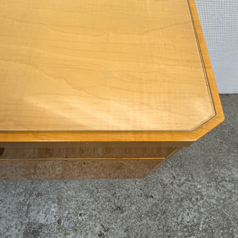 Met zijn bescheiden formaat en verfijnde afwerking is dit kastje niet alleen praktisch, maar ook een decoratief accent dat moeiteloos past in zowel vintage als eigentijdse interieurs; Ideaal als compacte bijzettafel / opberger of ‘gewoon’ als nachtkastje. Het blad wordt beschermt door een op maat gemaakt glazen plaatje.