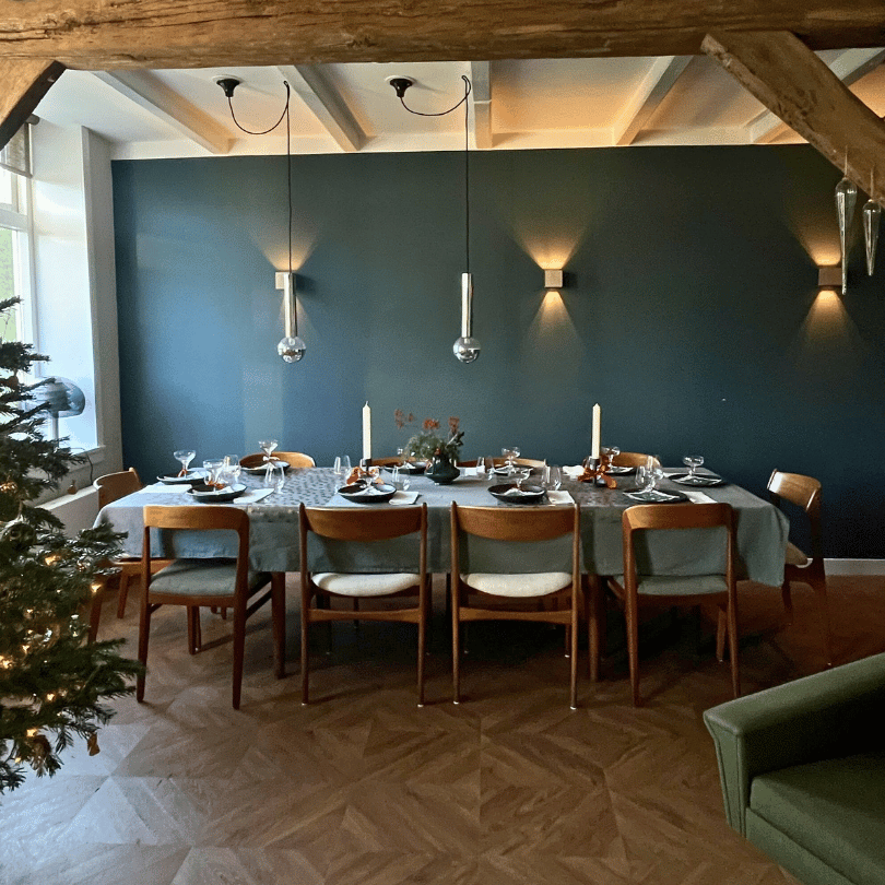 Dankzij het slimme ontwerp transformeert de tafel moeiteloos van een compacte opstelling naar een royale setting voor 8 tot 10 personen – ideaal voor diners, werkplekken of creatieve sessies getuige ook de laatste foto (onze kerst 2025 😉).
