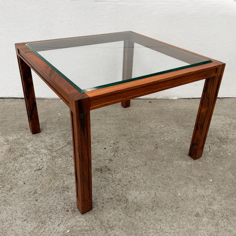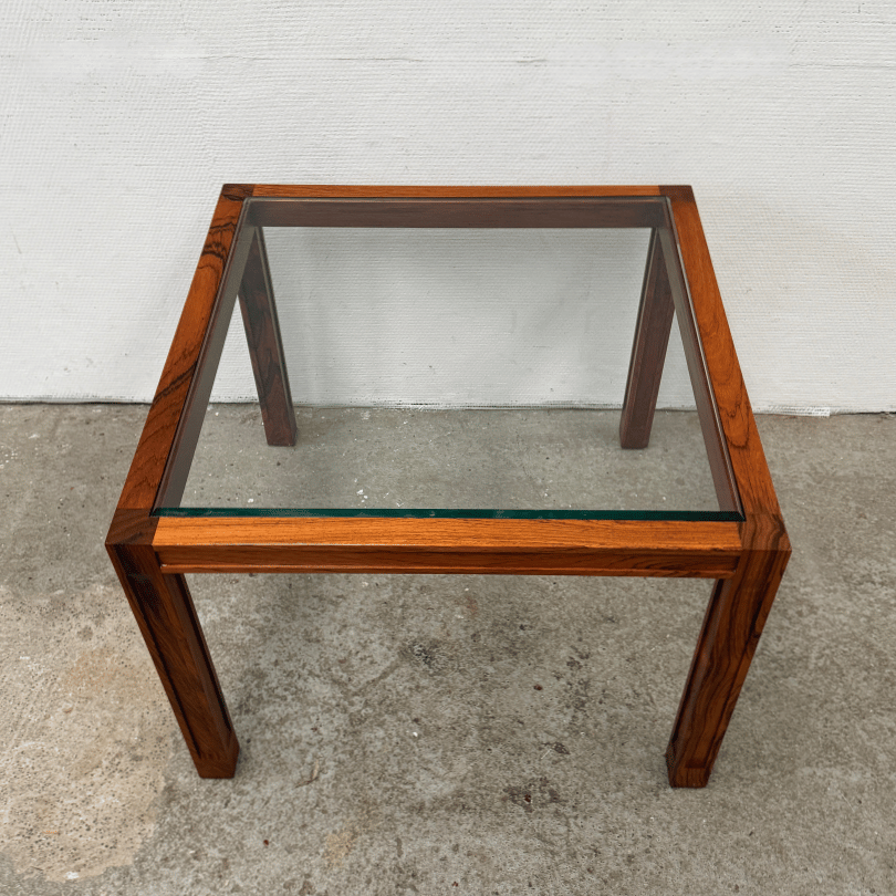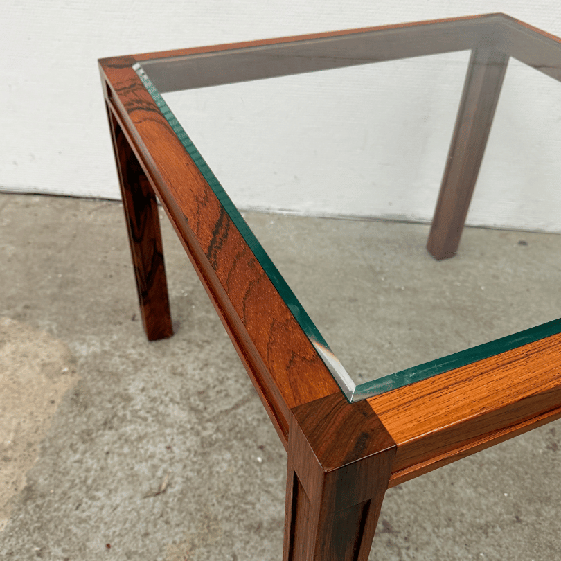 Salontafel vierkant, palissander en glas | jaren ’60