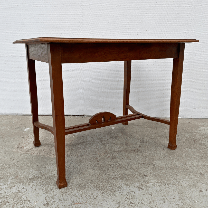 Vintage rechthoekige houten tafel met sierlijke Art Nouveau details.