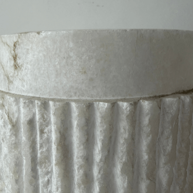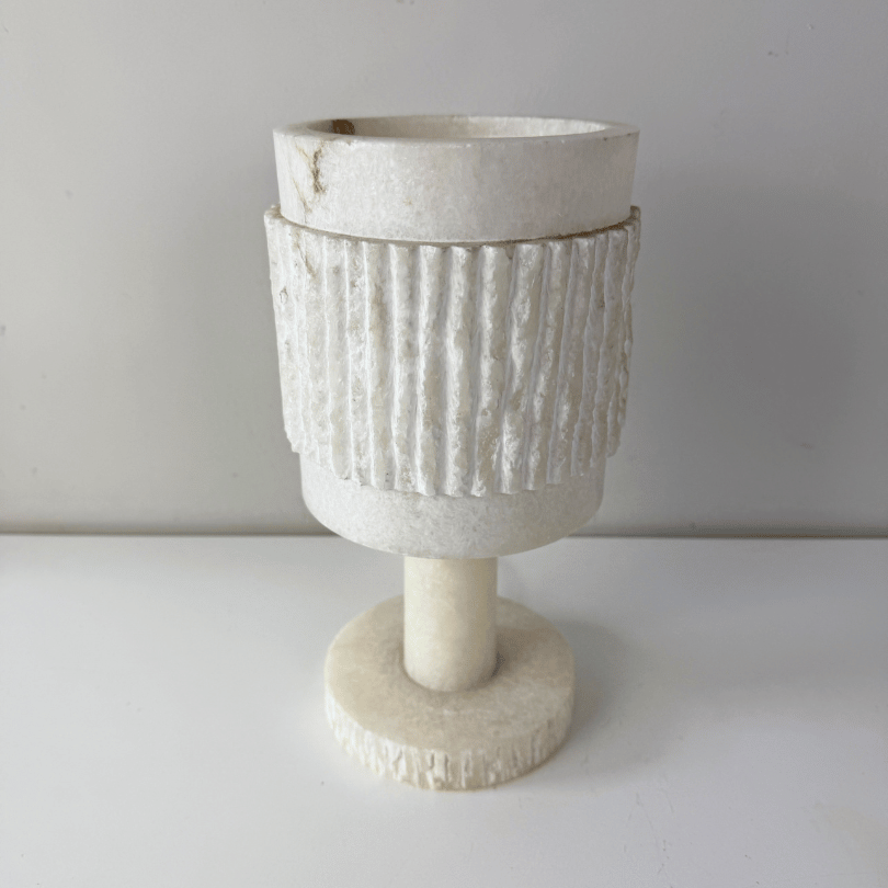 Het subtiele kleurverloop en de natuurlijke aders in het albast maken elk exemplaar uniek. Perfect op een nachtkastje, dressoir of in een stille hoek waar je net dat beetje warmte en verfijning wilt toevoegen. Een klein object met een grote sfeerwerking.