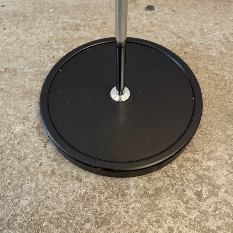 Deze vintage hengel vloerlamp heeft die heerlijke mix van elegantie en functionaliteit die je meteen herkent uit de jaren zestig en zeventig. Het slanke chromen frame, de verstelbare arm (de ‘hengel’) en de ingetogen zwart metalen kap geven de lamp een rustige, moderne uitstraling — perfect om een leeshoek, zithoek of werkplek subtiel maar sfeervol te verlichten.